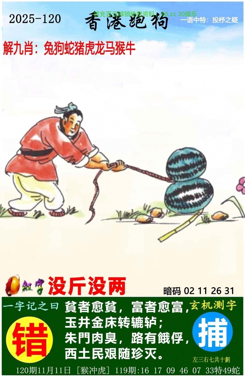 120期:今期牛狗蛇看定,特碼旺大和单出开牛41准 ①杀肖:马龙猴 ②图解:牛狗蛇鸡猪 ③大数+单数 |